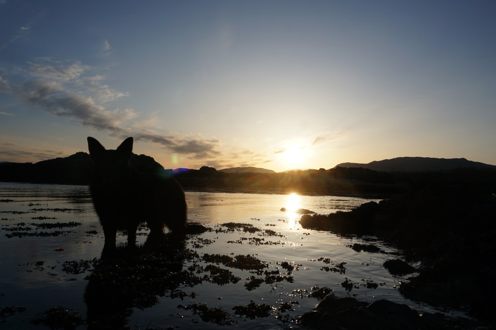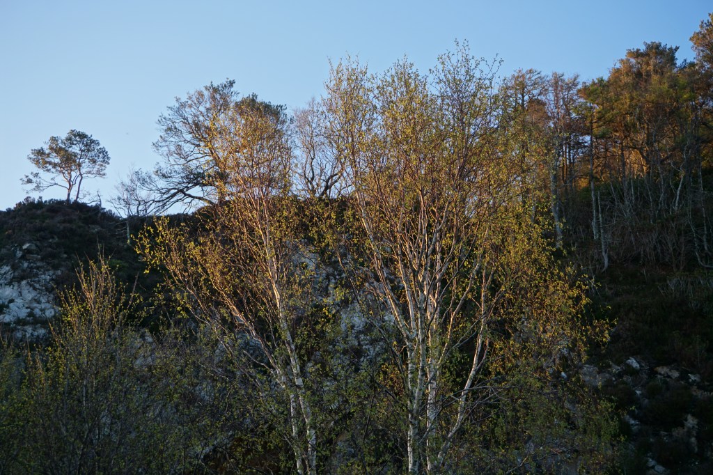 The nights are long enough now that I don’t even want an early bed – which is unheard of from me. On nights off Roscoe and I disappear down to the beach with our Crabbing kit about 8pm to see if we can catch anything. As it stands I haven’t yet, and Roscoe keeps eating all my bait. Sitting on the rocks, waiting to see if anything takes, the water laps at our feet and a Cuckoo calls from the forest opposite. Despite my bad luck, the nights themselves are glorious. The setting sun creates a shining golden warmth, and at the right angle the rays just catch the ends of the Silver birch branches, making them Auburn in the dying light. Bluebells have even started to slowly emerge, but they seem a little more hesitant to fully unfurl and relax, similar to the ferns that coil tight still like Ammonites.